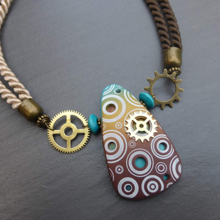 Martina appreciates the fact that creating with polymer is relatively fast and you don’t need many tools, and yet the results are wonderful. Although she’s an accountant by profession, she says that polymer art is her lifelong love. She passionately learns new techniques from both Czech and international polymer clay artists. One of her favourite techniques is silkscreen printing on polymer. As you can see, Martina has a great sense of detail and colour and she perfectly combines polymer components with beads and interesting stringing material.